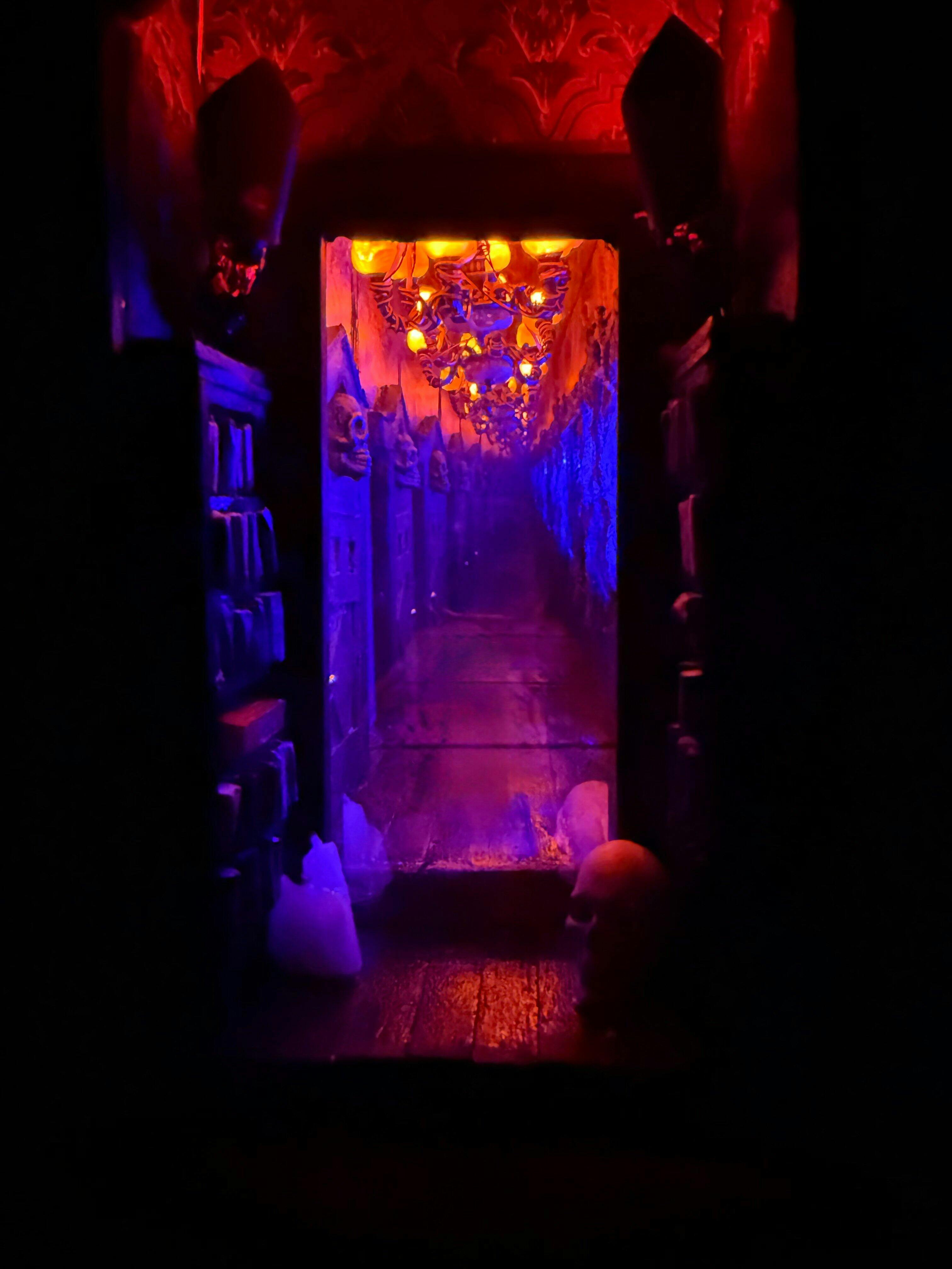 In the above 1:48 (quarter scale) very colorful picture, the 26-LED string is around the parking lot. They make this little scene come alive with Mini Colored Christmas Lights.